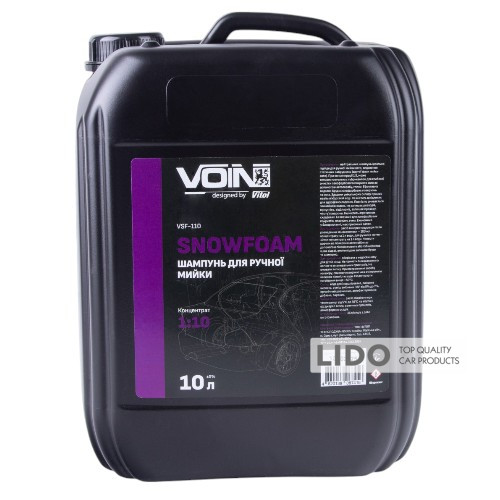 VOIN SnowFoam – это нейтральный шампунь идеально подойдет для второй фазы мойки авто (удаление статических загрязнений). Обладает густой и насыщенной пеной с приятным ароматом. Эффективно удаляет грязь из лакокрасочных поверхностей и стекла. Благодаря уникальному составу работает даже в жесткой воде. Не содержит вредных для здоровья составляющих. Полностью смывается обыкновенной водой, не оставляет разводов, помутнений, бликов, оставляет прозрачную, чистую поверхность. Не содержит агрессивных составляющих. Безопасный для лакокрасочных покрытий, пластика, резины. Экономный в использовании, имеет приятный запах. При концентрации 1:5 может использоваться лубрикантом для глубокой очистки лакокрасочного покрытия авто с помощью автоскраба, глины.