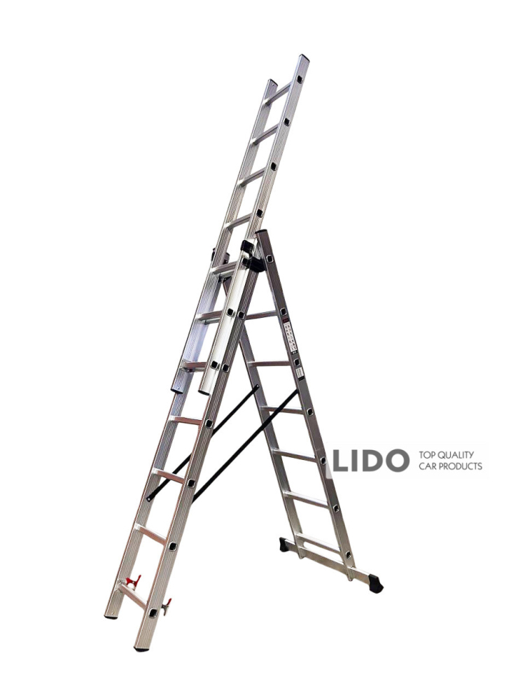 Трехсекционная лестница GTM KME307 – это идеальное решение для любых работ на высоте. Благодаря универсальной конструкции ее можно использовать как приставную, выдвижную стремянку или стремянку. Усиленный алюминиевый профиль обеспечивает легкость транспортировки, долговечность и коррозионную стойкость.