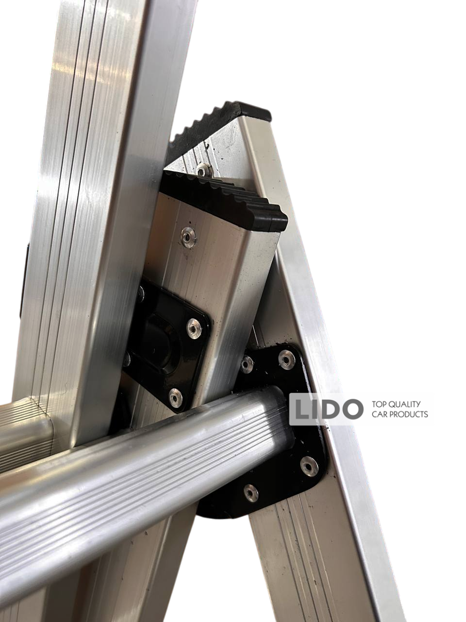 Профиль стремянок имеет размер 62×24 мм и толщину 1,15 мм. Конструкция оснащена дополнительными ребрами жесткости, противоскользящими упорами, атмосферостойкими стягивающими лентами и широким стабилизатором для повышенной безопасности во время эксплуатации.