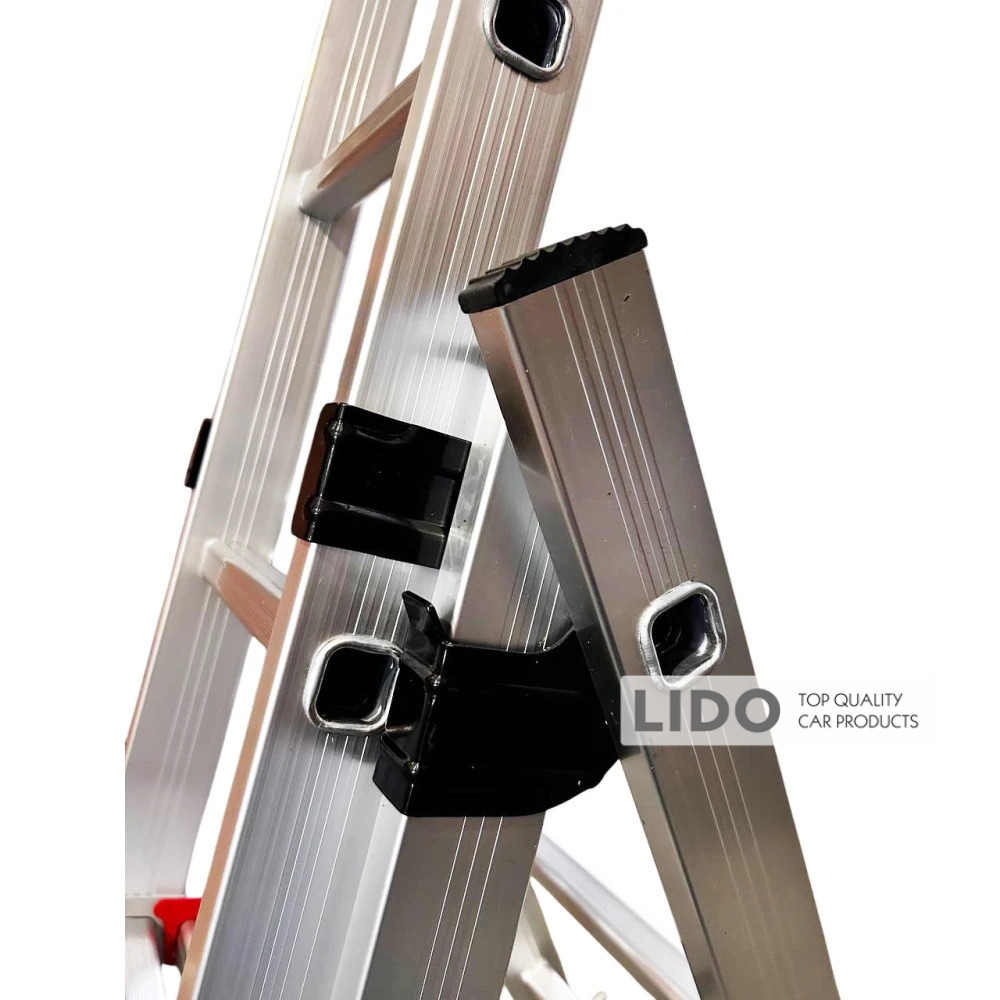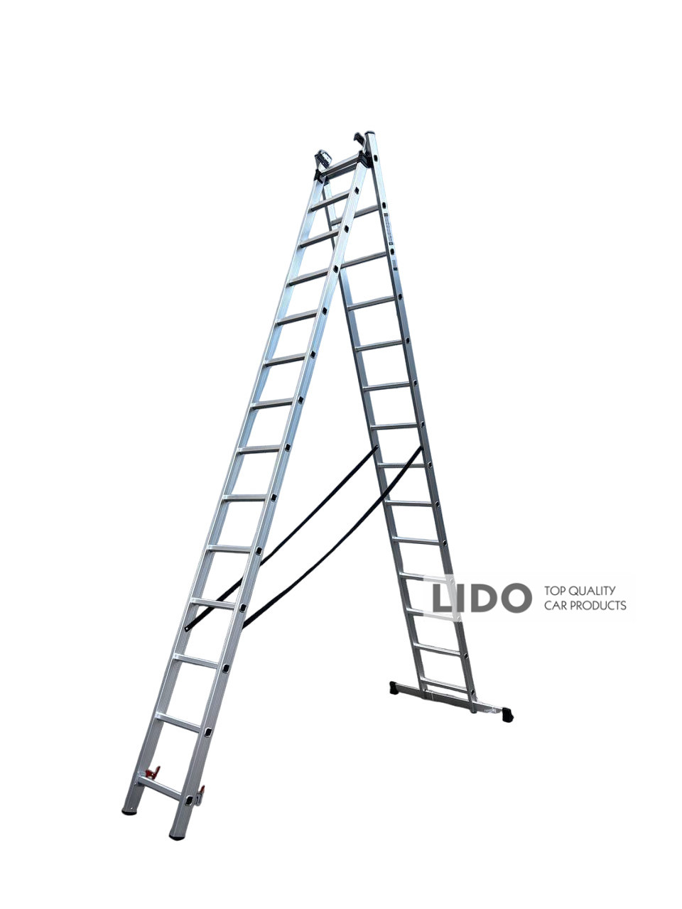 Лестница трехсекционная алюминиевая GTM KME314 3x14 ступеней 3,8-9,74м