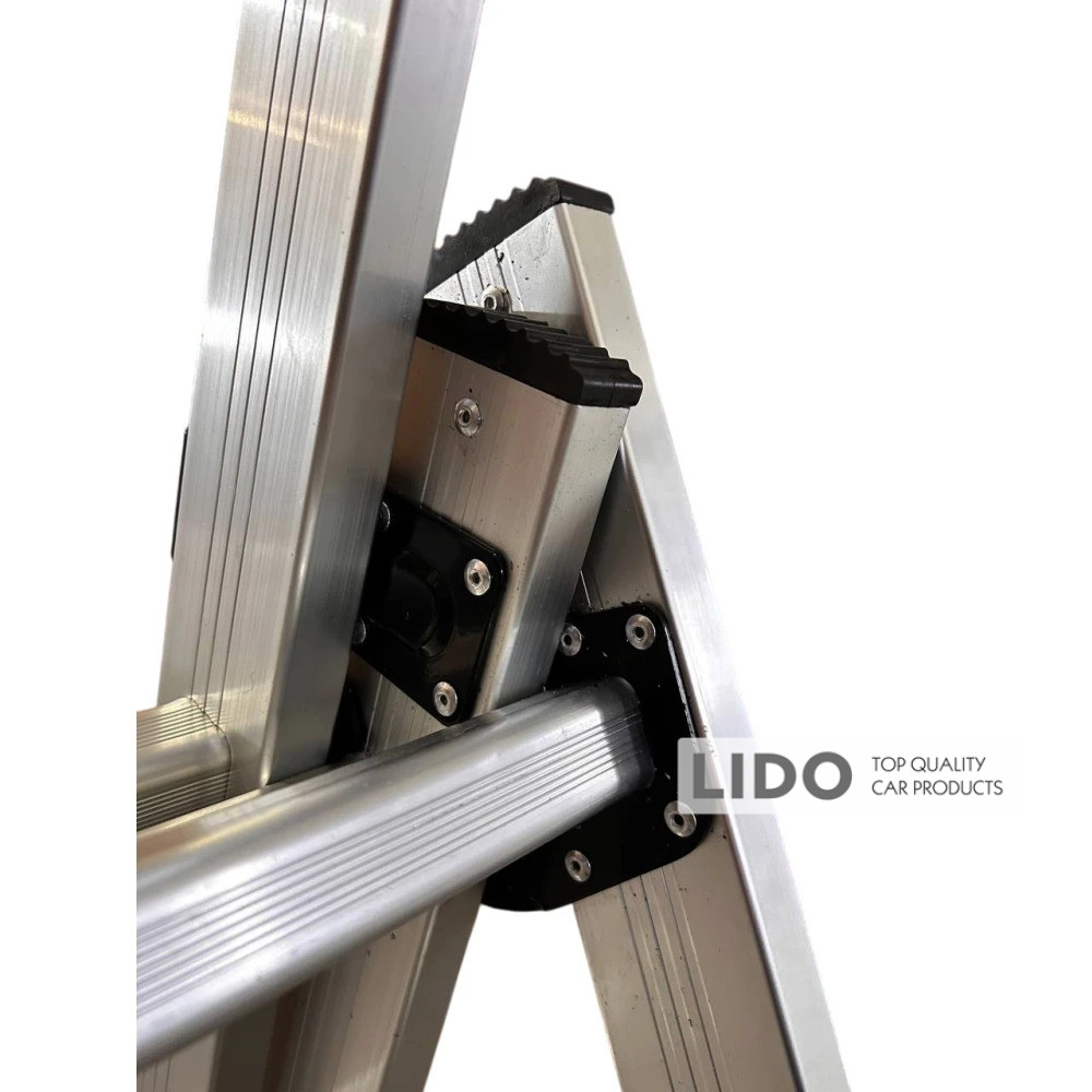 Алюминиевый профиль, использованный для изготовления стремянок, обеспечивает легкость транспортировки, долговечность эксплуатации и стойкость к коррозии и механическим повреждениям.