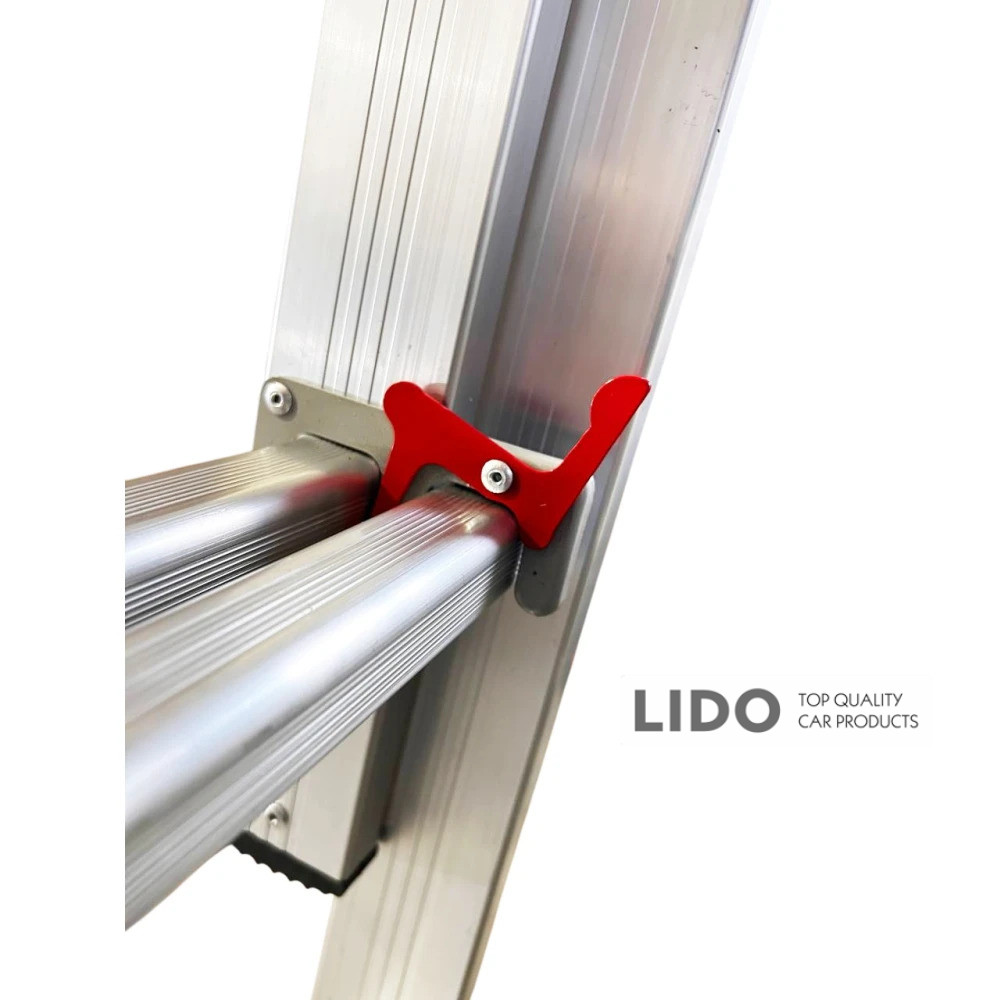 Универсальные 3-секционные лестницы GTM — это надежные и многофункциональные лестницы, которые можно использовать как приставные или выдвижные стремянки, а также как стремянки. Усиленный профиль, ступени с антискользящим покрытием, дополнительный стабилизатор и надежные металлические фиксирующие замки гарантируют безопасное использование.