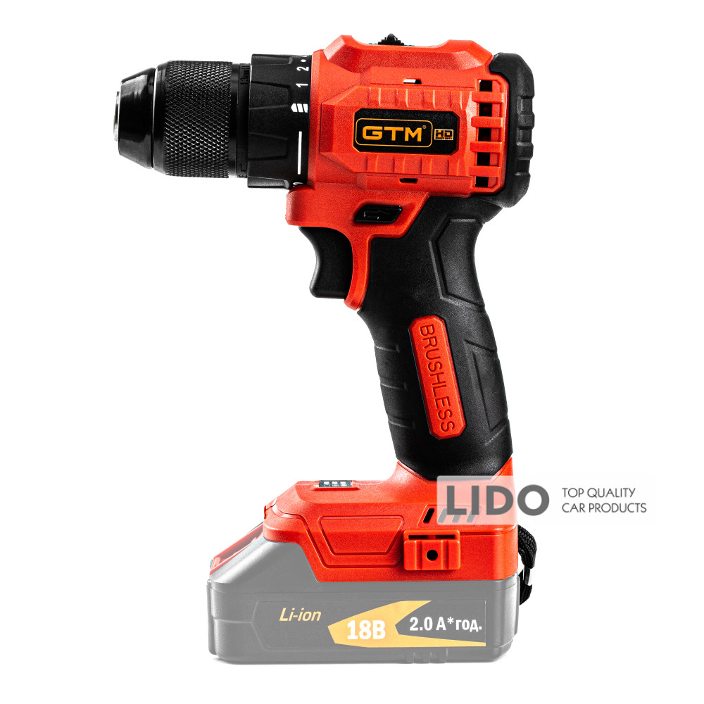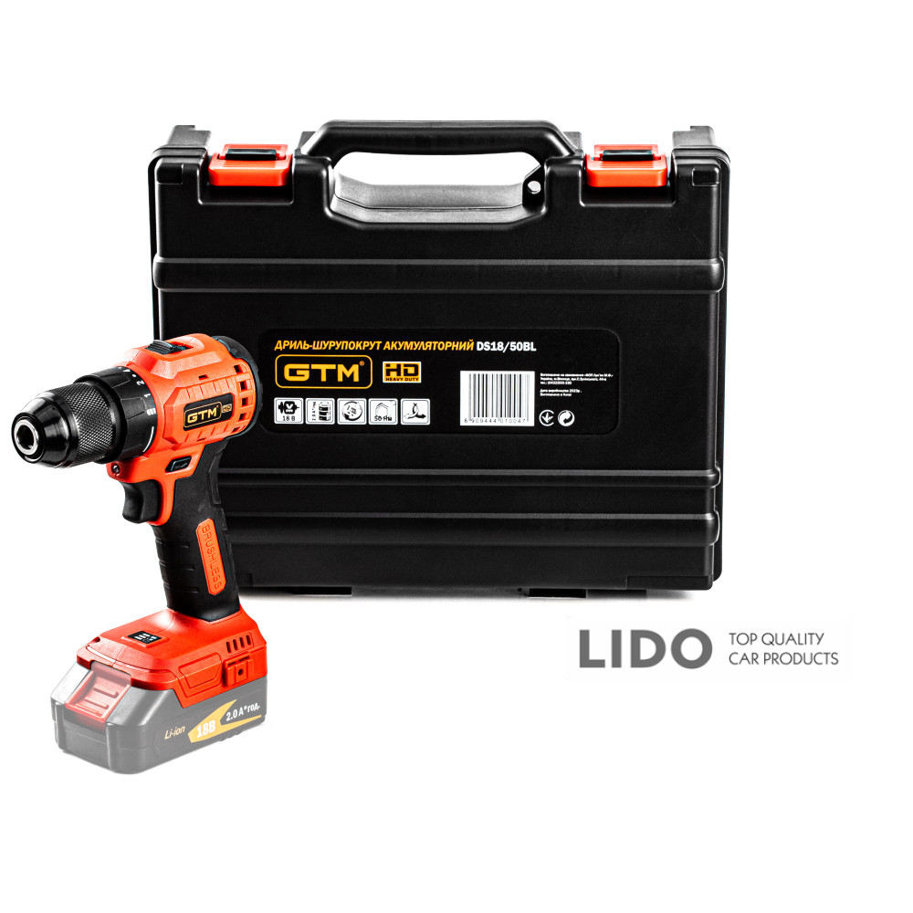Дрель-шуруповерт аккумуляторный GTM DS18/50BL 18В 50Нм без АКБ и ЗП
