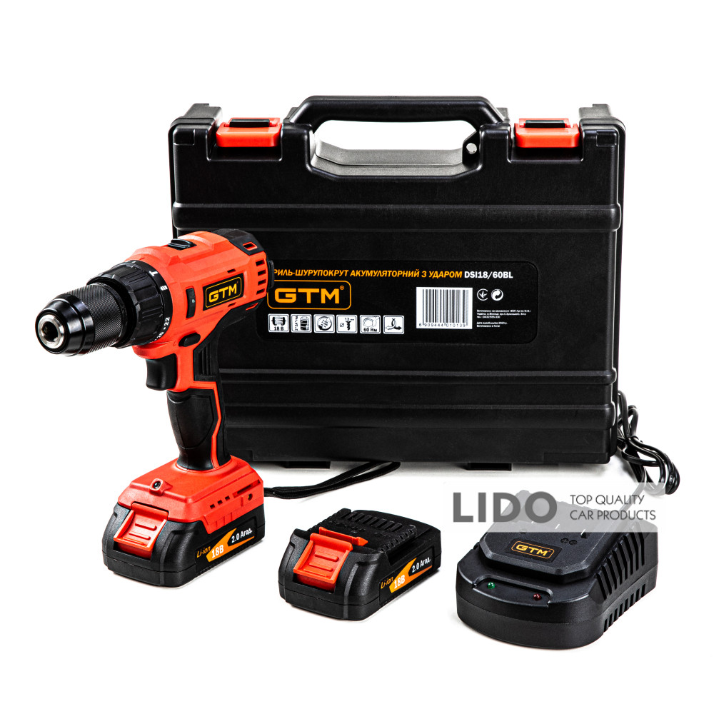 Дрель-шуруповерт аккумуляторный GTM DSI18/60BL с ударом 18В 60Нм