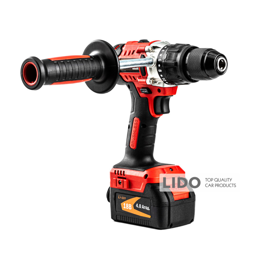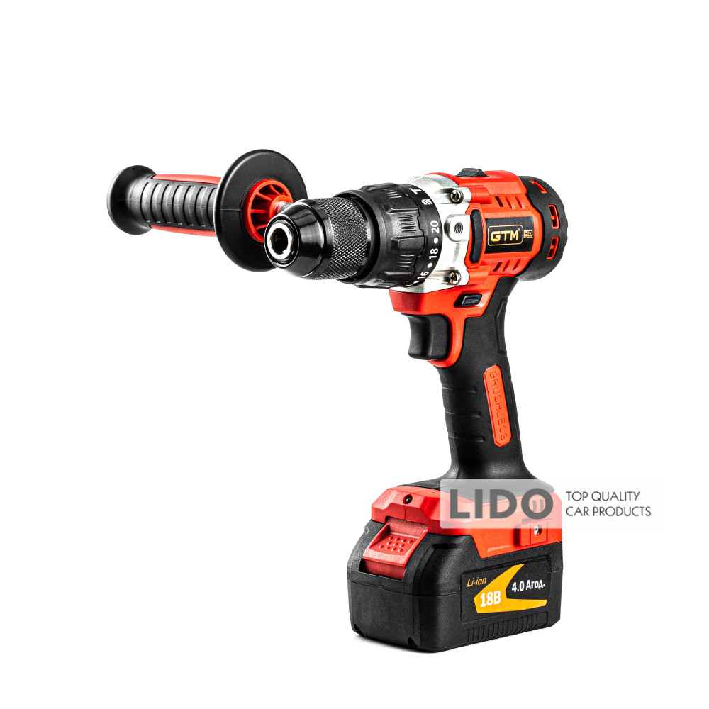 GTM DSI18/80BL — бесщеточная дрель-шуруповерт профессионального класса, работающий от Li-Ion аккумуляторов напряжением 18 В. Инструмент оснащен полностью металлическим быстрозажимным 13 мм патроном, обеспечивающим надежную фиксацию бит и сверл во время интенсивной работы. Двухступенчатый редуктор позволяет регулировать максимальную скорость в зависимости от задания. Модель имеет 20 режимов закручивания с максимальным крутящим моментом 80 Нм, а также режимы сверления и сверления с ударом.