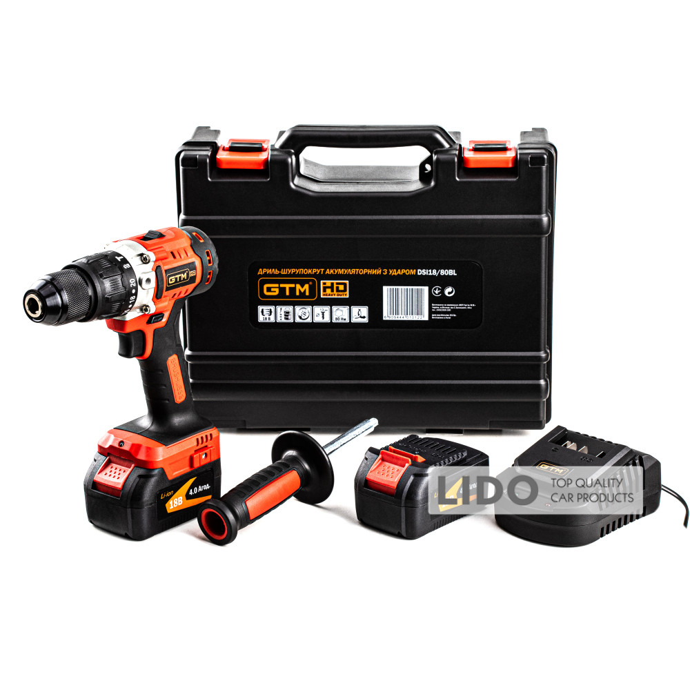 Дрель-шуруповерт аккумуляторный GTM DSI18/80BL с ударом 18В 80Нм