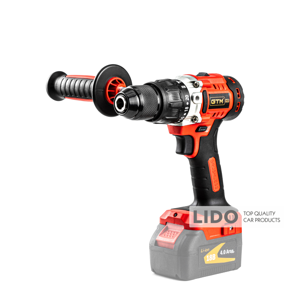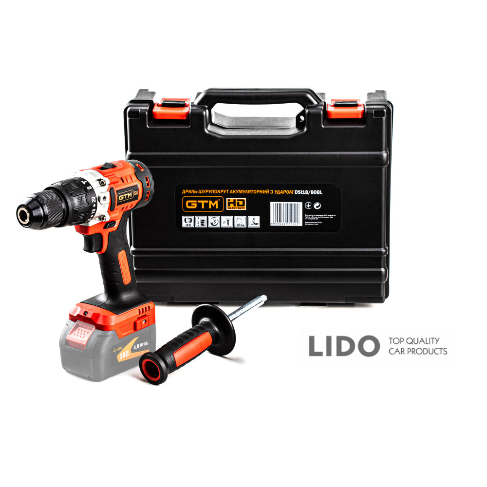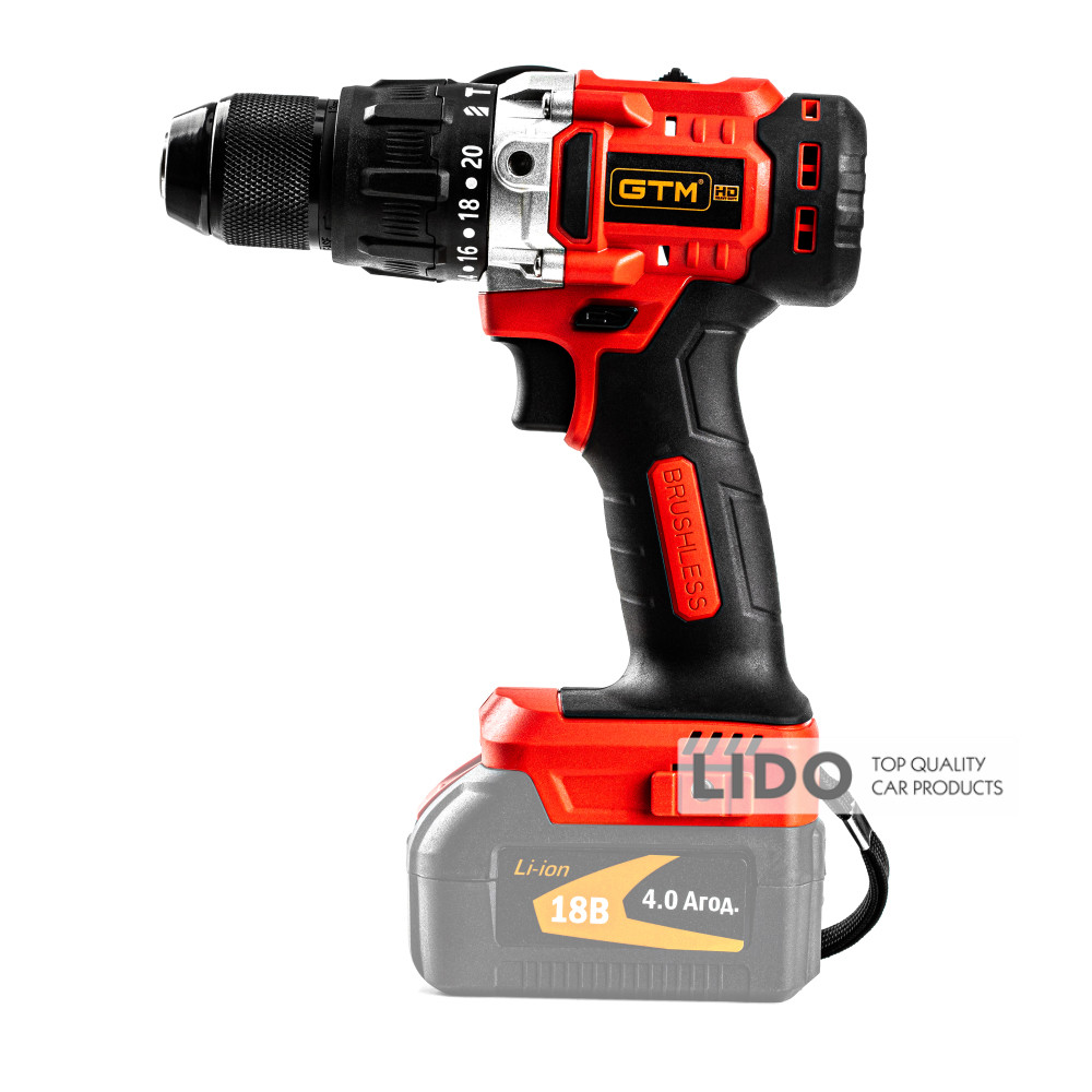 Дрель-шуруповерт аккумуляторный GTM DSI18/80BL с ударом 18В 80Нм без АКБ и ЗП