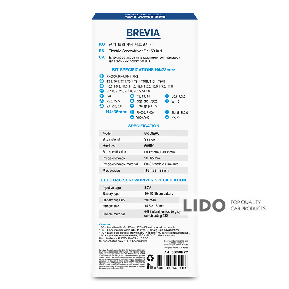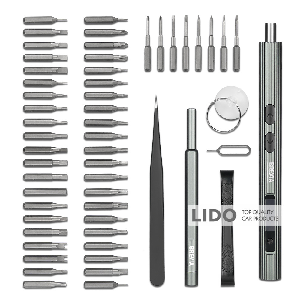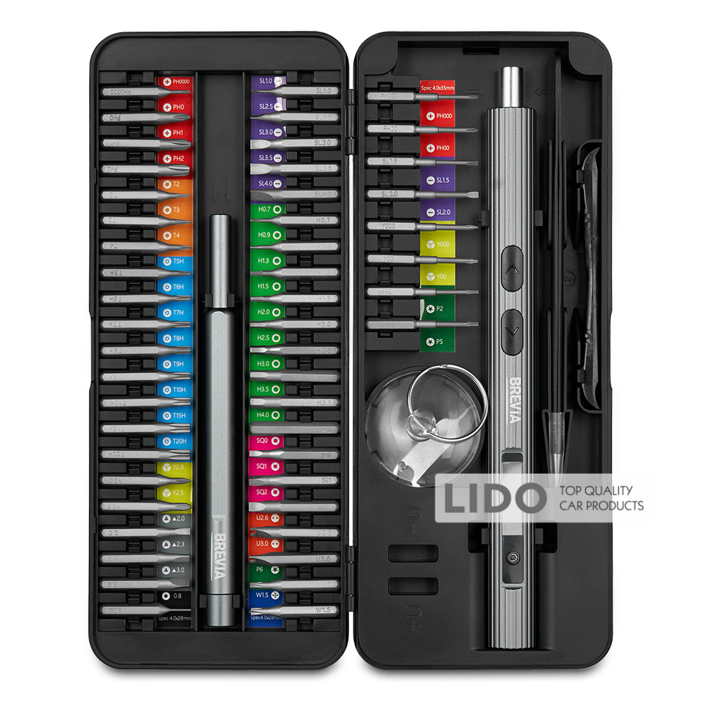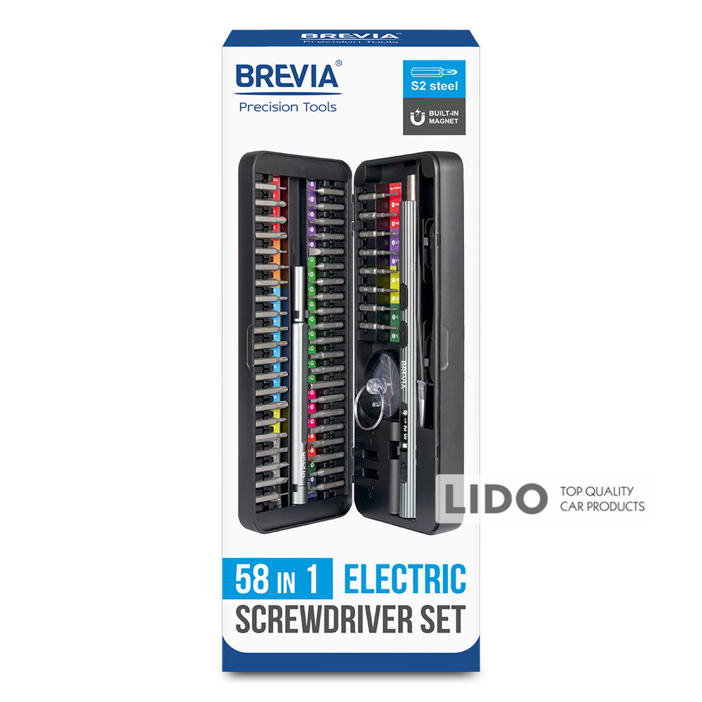Электроотвертка Brevia с комплектом насадок для точных работ электрическая 15,8х180мм, 58в1