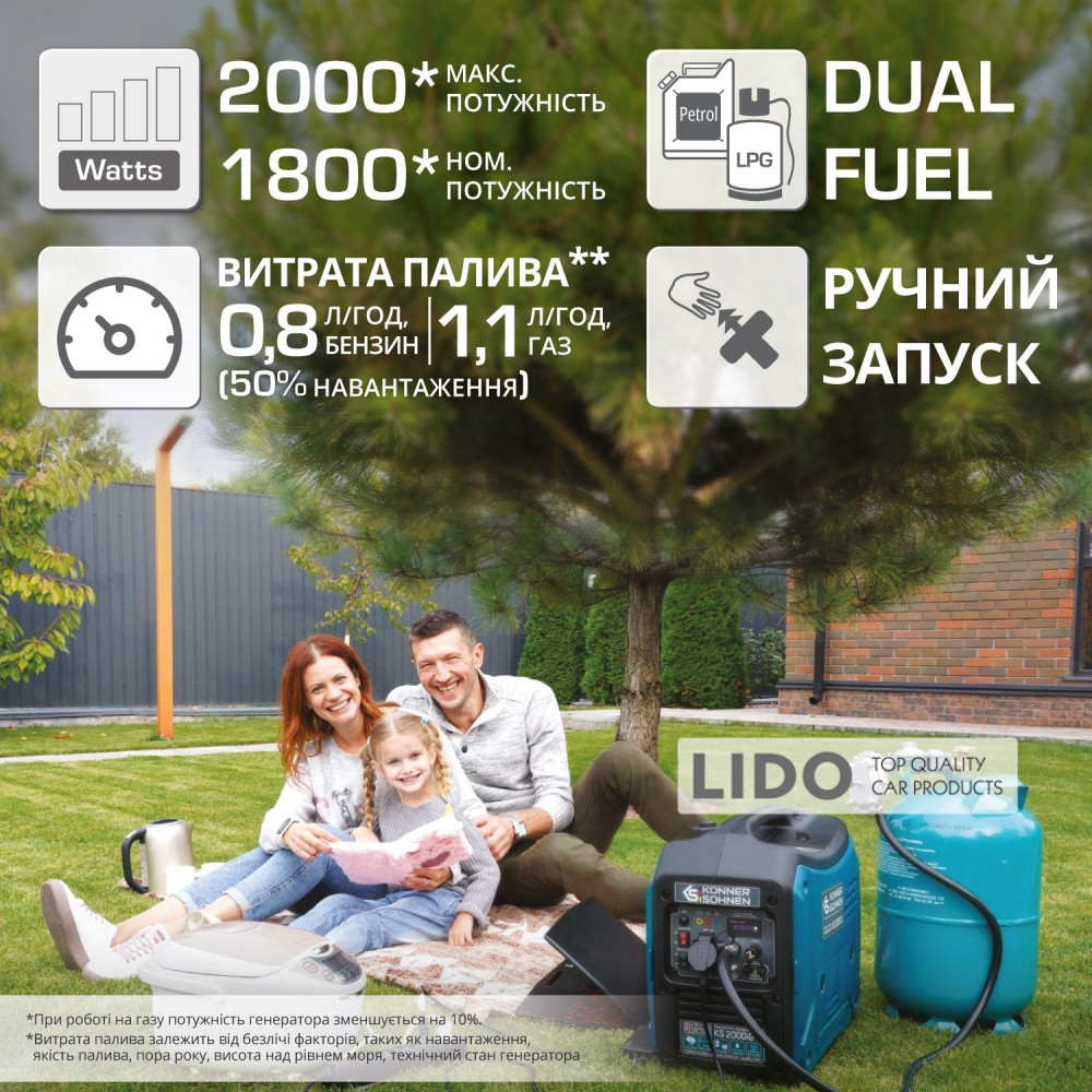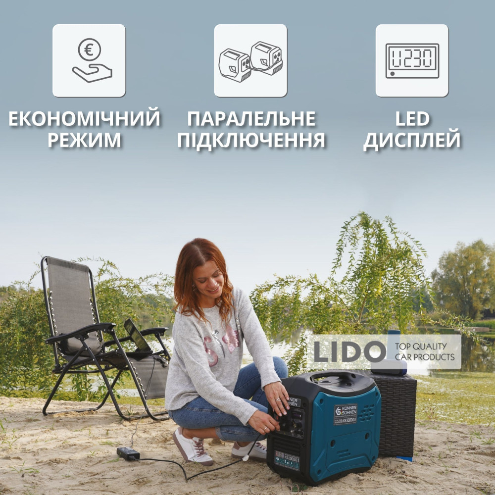 Генератор Konner&Sohnen KS 2000iG S инверторный газобензиновый 2кВт (ном.1,8кВт)