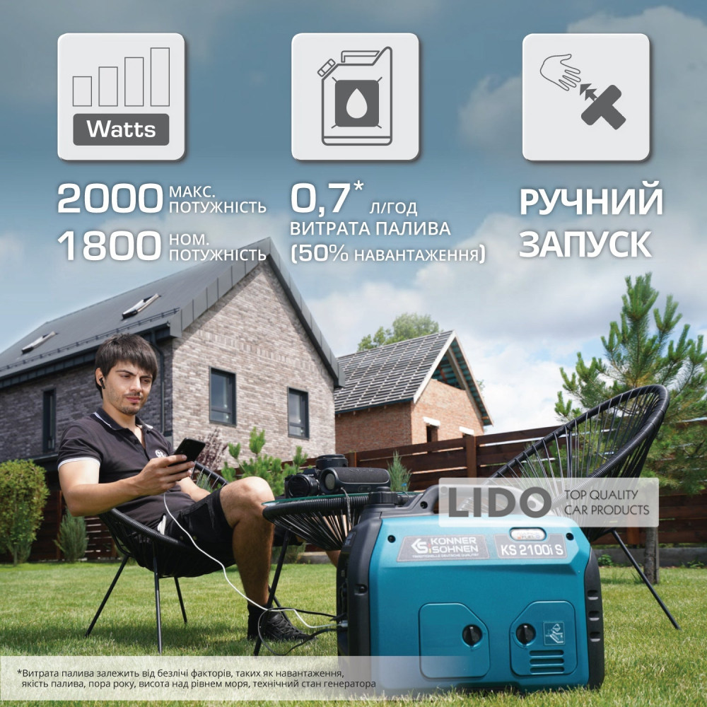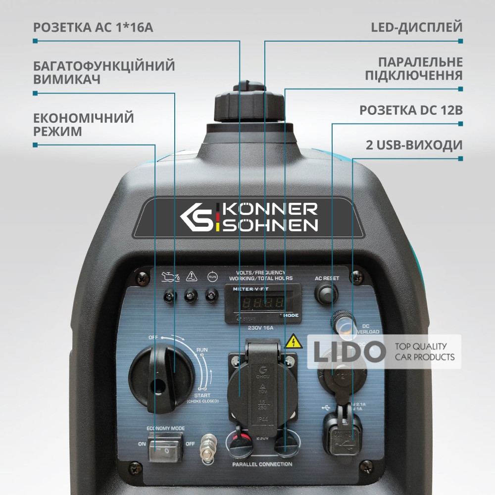 Генератор Konner & Sohnen KS 2100i S инверторный бензиновый 2кВт (ном.1,8кВт)