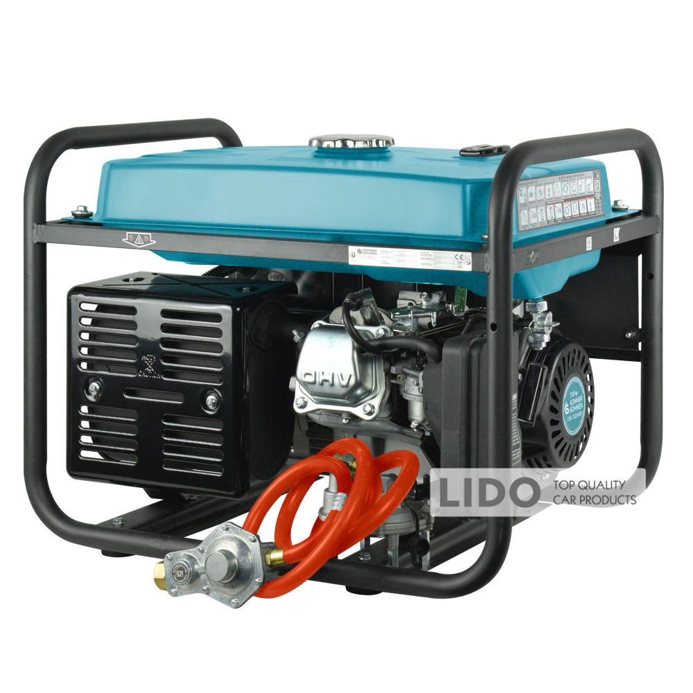 - Два вида топлива для вашего удобства: используйте генератор на бензине или газе (пропан-бутан), выбирая наиболее доступный и экономичный вариант.