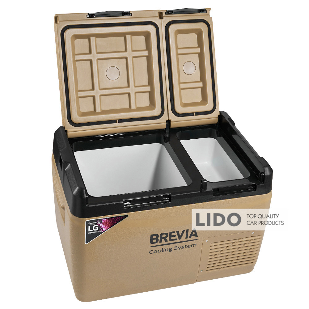 Автомобильный холодильник Brevia 38 л (компрессор LG) двухкамерный 23425 — вместительный компрессорный холодильник с двумя независимыми камерами, позволяющий одновременно охлаждать и замораживать продукты. Благодаря надежному компрессору LG устройство обеспечивает быстрое охлаждение, стабильную работу и эффективное поддержание заданной температуры во время путешествий, кемпинга или длительных поездок.