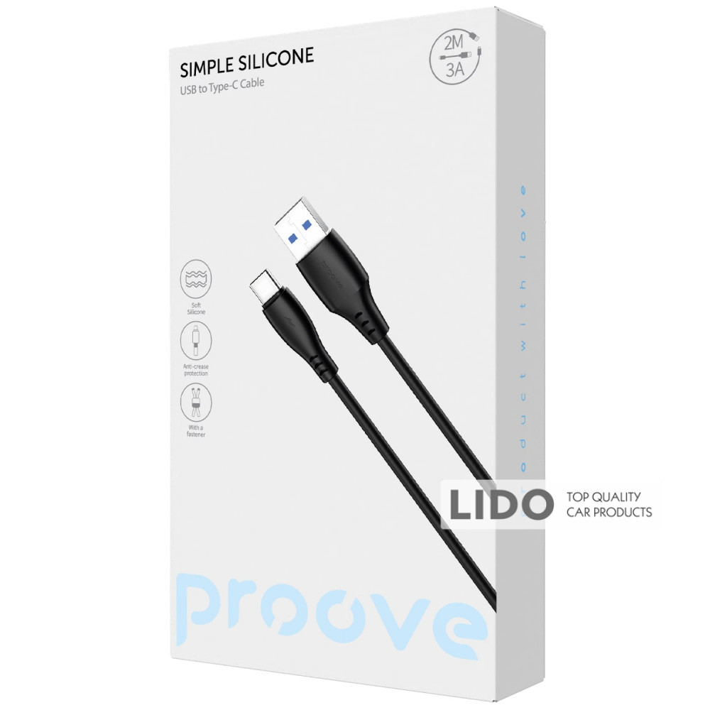 Кабель Proove Simple Silicone USB to Type-C 3A (2m) черный