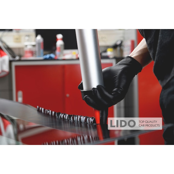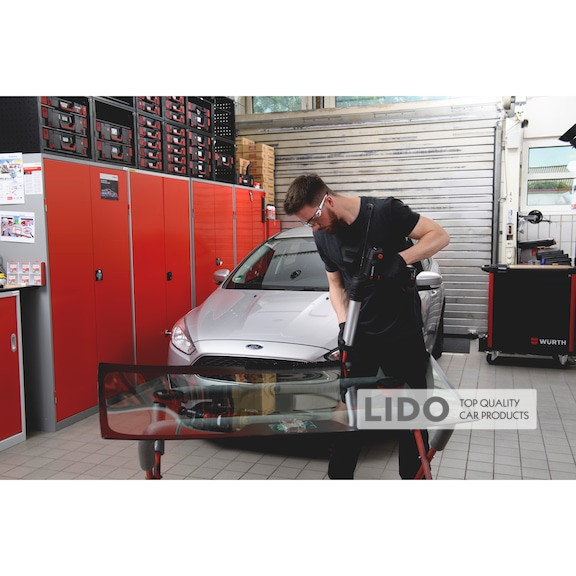 Для подготовки поверхности обязательна предварительная очистка. Перед использованием продукта проверьте срок годности. Наносите клей, направляя пистолет вертикально, начиная с центра в нижней части окна. Не поднимайте автомобиль на подъемнике. Обратите внимание на информацию о геометрии борта, предоставленную производителем транспортного средства.