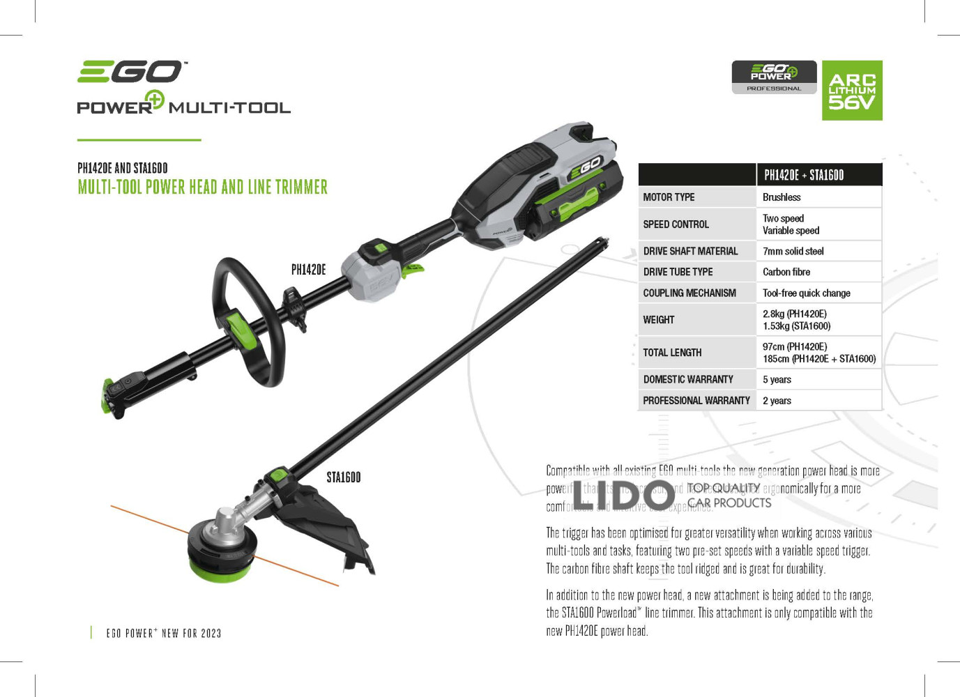 EGO PH1420E — новое поколение аккумуляторных мультифункциональных инструментов (комбисистема) для всего спектра садовых и дачных работ. В зависимости от подключенной насадки инструмент может выполнять функции триммера, кустореза или культиватора. Мощность и производительность обеспечивает безщеточный двигатель, работающий от Li-ion аккумуляторов EGO 56V. Инструмент оснащен регулятором скорости, позволяющим подстроиться под задачи любой сложности.
