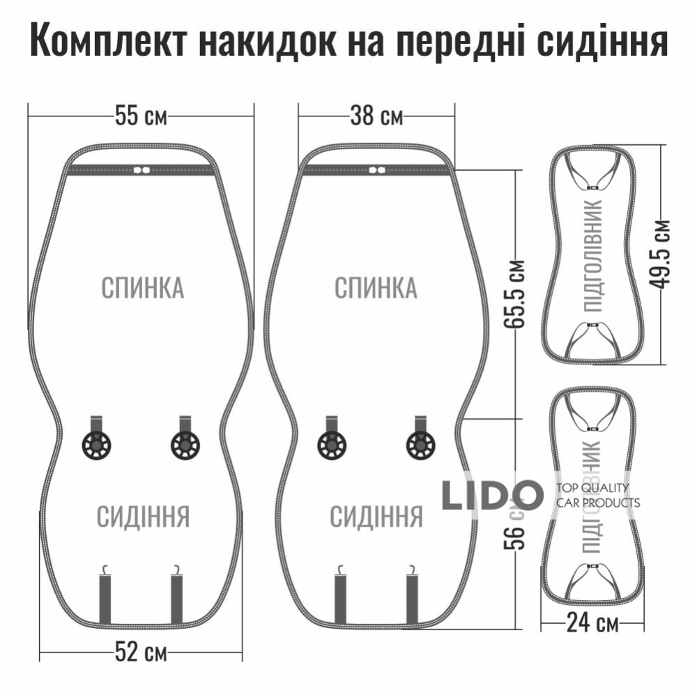 Комплектация (11 элементов): передние сиденья – 2 элемента, задние сиденья – 4 элемента, подголовники – 5 элементов.