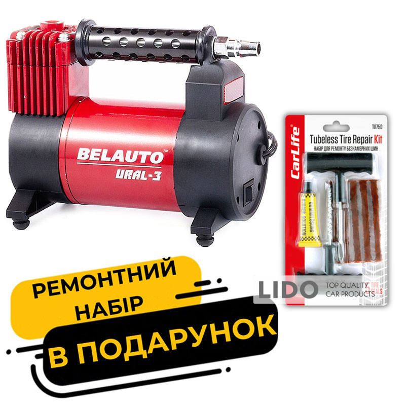 Компрессор автомобильный Белавто Урал-3 10Атм 40л/мин 170Вт BK44 + Набор для ремонта шин CarLife