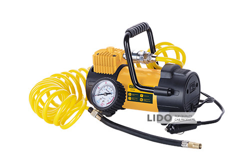 Компрессор автомобильный Сила однопоршневой 900416 мощностью 180 Вт с производительностью 40 л/мин и максимальным давлением 10 Атм. Работает от прикуривателя автомобиля, оснащен аналоговым манометром. Крученный шланг обеспечивает удобство использования на разном расстоянии.
