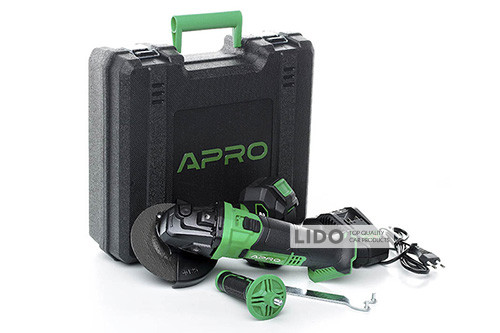 Кутошліфувальна машина (болгарка) APRO 20В, 125мм, 4А, 20AG, 1 АКБ, ЗУ, кейс