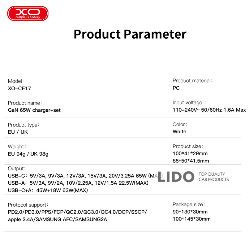 Комплектация: зарядная станция XO WX035 + кабель USB‑C