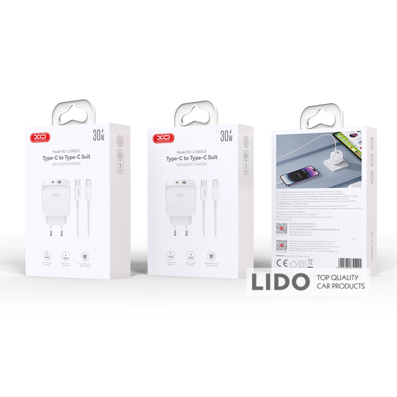 Сетевое зарядное устройство XO L138 PD30W/QC18W (1 USB-A + 1 USB-C) + Type-c кабель (белый)
