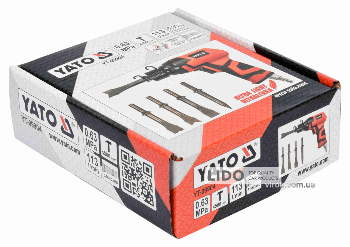 YATO YT-09904 – профессиональный пневматический отбойный молоток от польского бренда YATO с полным комплектом аксессуаров.