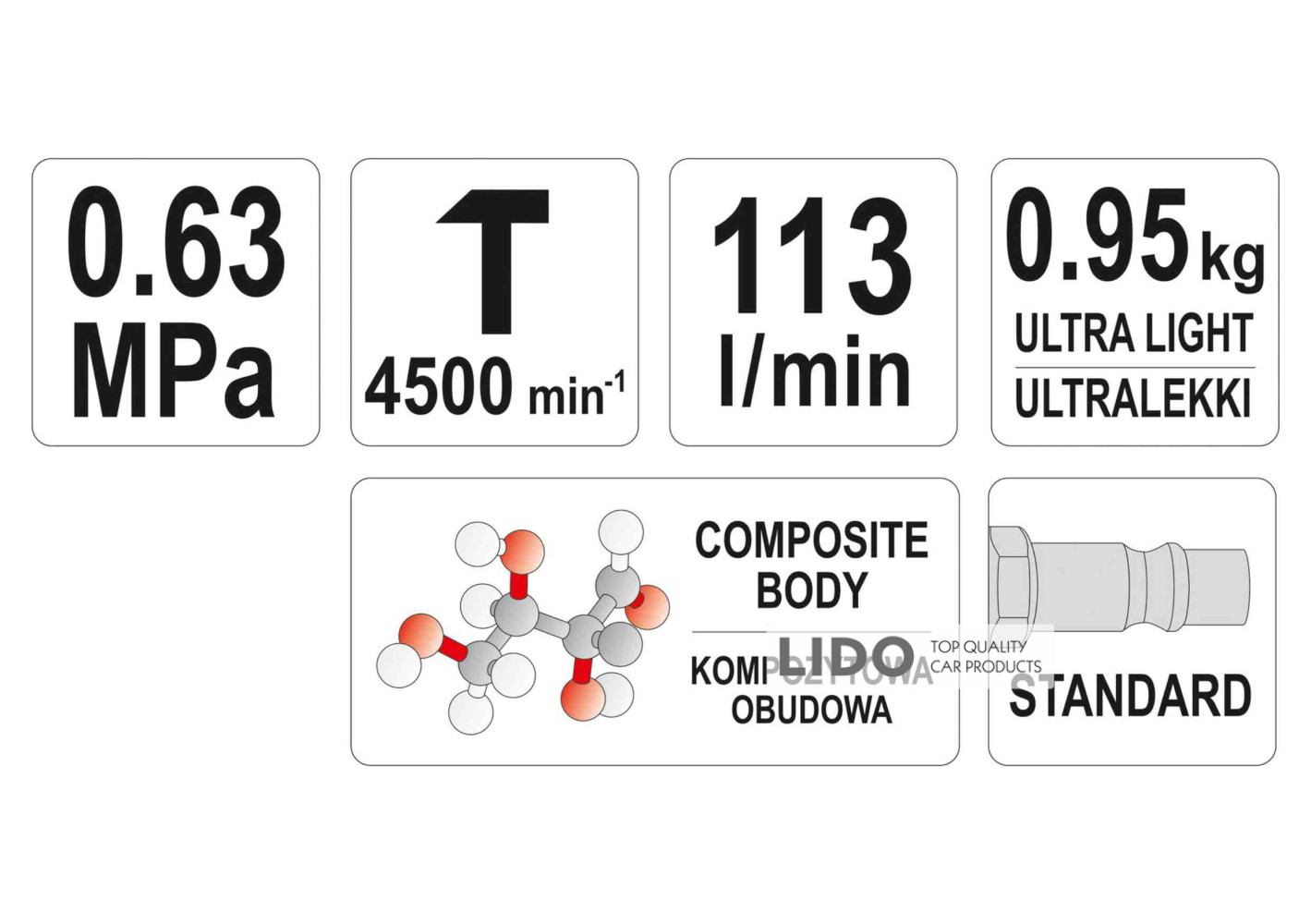 - Рабочее давление: 0,63 МПа