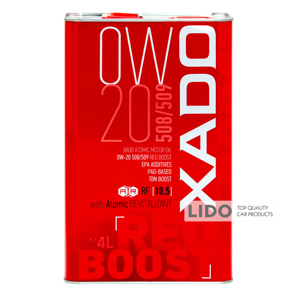 XADO Atomic Oil 0W-20 508/509 RED BOOST – моторное масло премиум-класса для двигателей группы VAG. Содержит РЕВИТАЛИЗАНТ® RF[10,5]* и инновационную присадку RED BOOST.