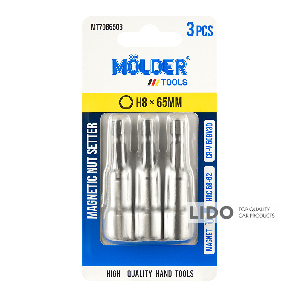Набор бит магнитных для кровельных саморезов MOLDER H8×65 мм (3 шт) — специализированный набор для монтажа кровельных саморезов с шестигранной головкой. Удлиненная длина 65 мм обеспечивает комфортную работу в труднодоступных местах, а мощный магнит надежно удерживает крепление при установке.