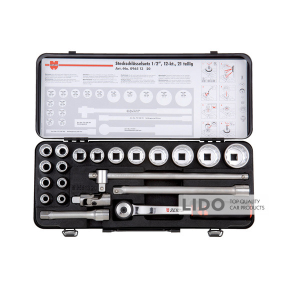 Набор метрических торцевых головок 1/2", 21 предмет.