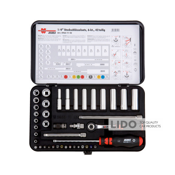 Набор головок Wurth торцевых Zebra с трещоткой 1/4" 42шт