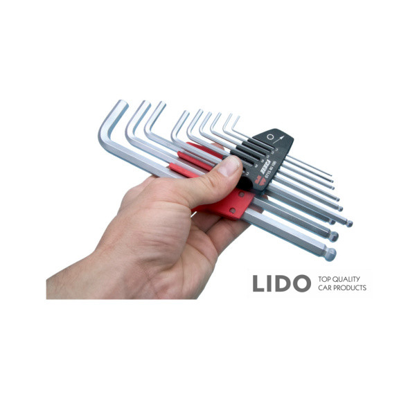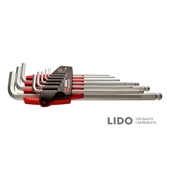 Профессиональный набор из 9 Г-образных шестигранных ключей, обеспечивающий удобство использования и долговечность в работе с разными крепежными элементами.