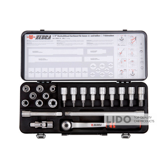 - 19 торцевых головок, размеры: 10, 11, 12, 13, 14, 15, 16, 17, 18, 19, 20, 21, 22, 24, 26, 27, 28, 30, 32