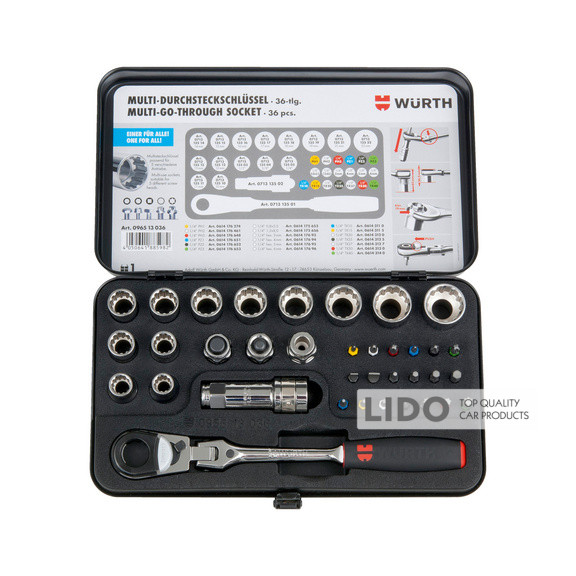Набор торцевых головок Wurth сквозных Multi-36TLG с трещоткой с шарниром 36шт