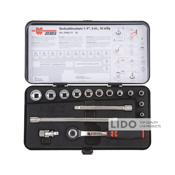 Набор торцевых головок Wurth с трещоткой 1/4 дюйма 16шт