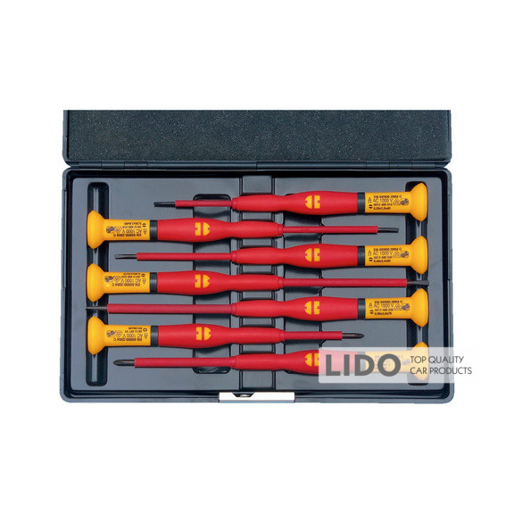 Набор отверток 5 шт. Проверен в соответствии с требованиями Союза немецких электротехников (VDE) и сертифицирован для работы под напряжением до 1000 В. Имеет сертификат безопасности GS, подтверждающий высокое качество и соответствие европейским стандартам безопасности.