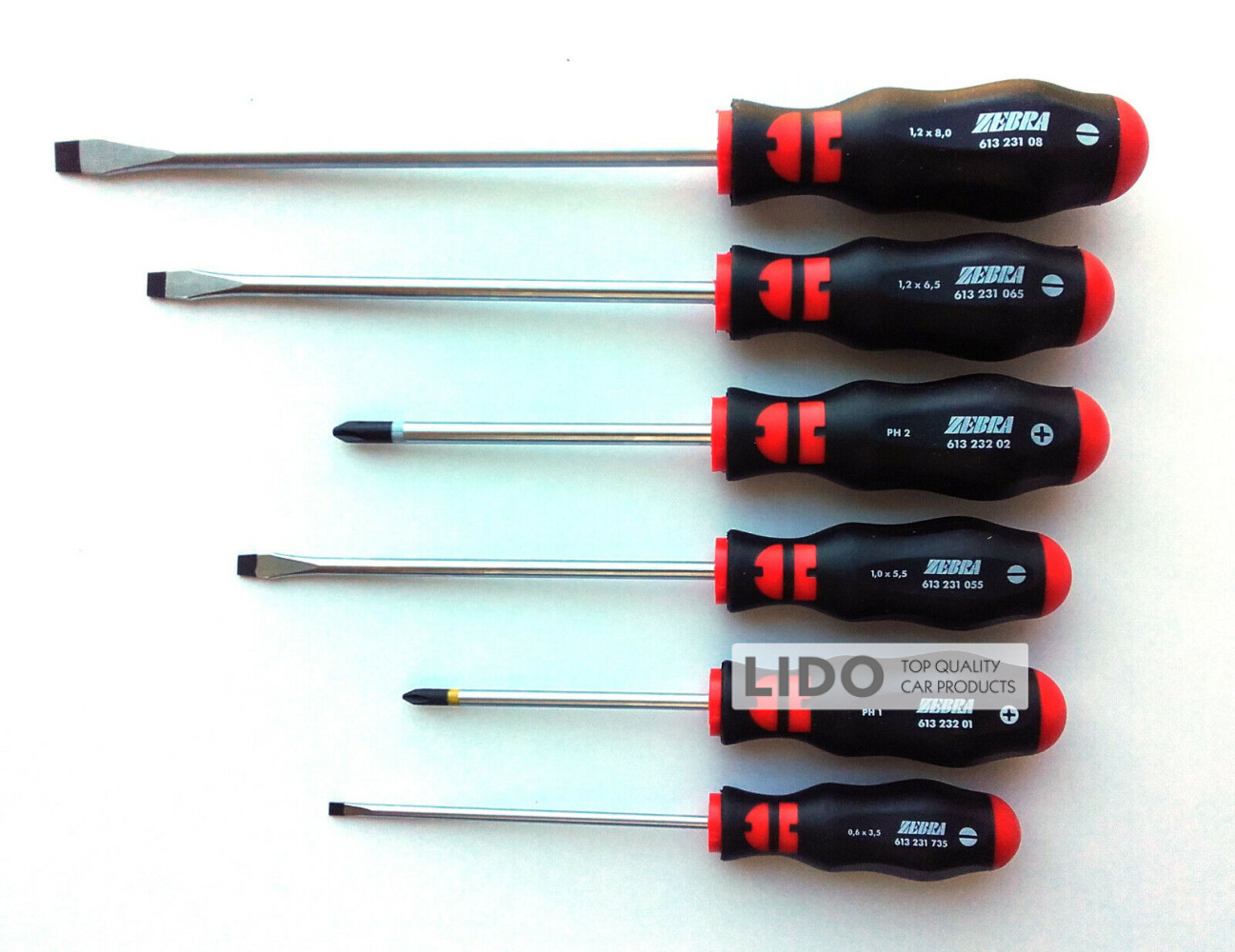 Набор отверток Wurth Zebra круглый стержень шлиц и PH 6шт