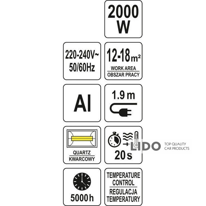 Степень защиты IP34 позволяет использовать радиационный обогреватель внутри помещений, например, в домах, гаражах, а также на террасах и балконах, избегая при этом влияния сильных осадков.