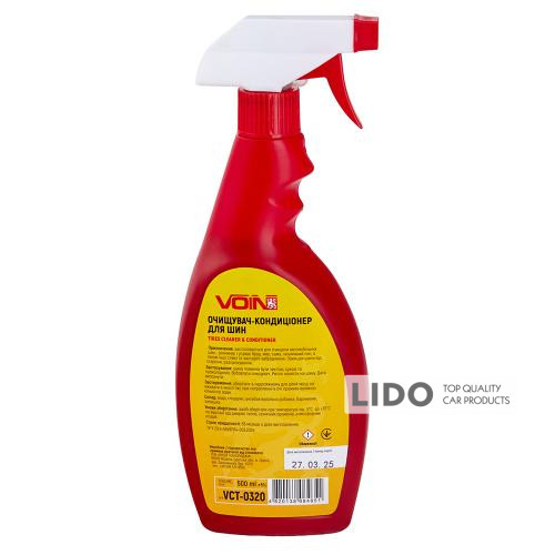 - Долговременный эффект: После обработки шин очистителем VOIN, эффект длится несколько недель, защищая шины и поддерживая их внешний вид в хорошем состоянии.