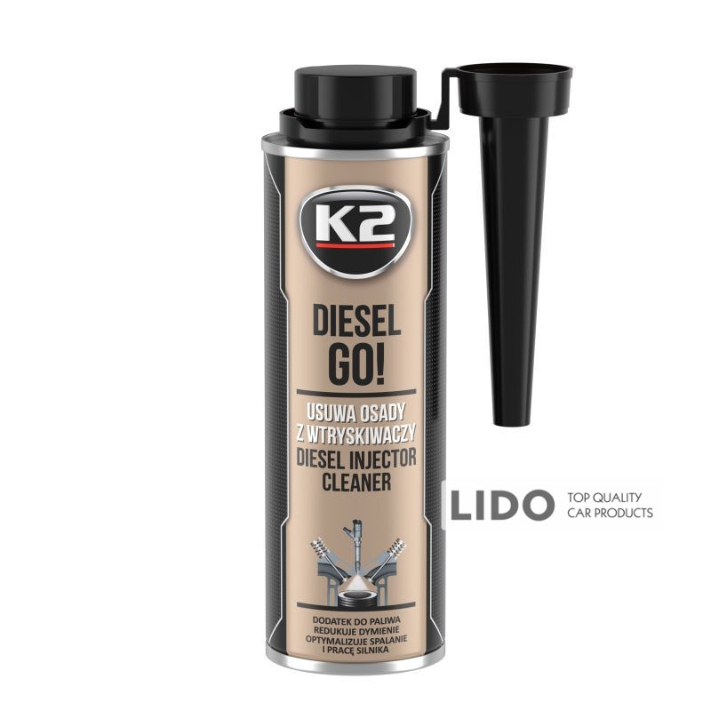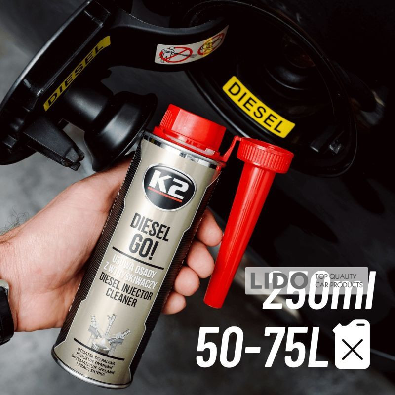 K2 Diesel Go! — профессиональный очиститель инжекторов в виде присадки к дизельному топливу. Это универсальная формула очистки, созданная для современных дизельных двигателей с форсунками высокого давления, системой Common Rail и фильтрами DPF.