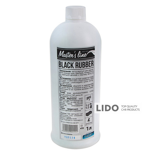 Очиститель кондиционер для шин Masters Line черный Rubber 1:3, 1л – это уникальный состав для ухода за внешними видами покрышек автомобилей, мотоциклов, грузовиков, автобусов и велосипедов. Этот состав содержит полимерные соединения, которые позволяют ему работать на поверхности длительное время, смягчать резину и предотвращать ее преждевременное старение и растрескивание. Обладает широким спектром действия, включая чернение шин, восстановление исходного цвета поверхности, устранение мелких трещин, восстановление блеска и придание водоотталкивающих свойств.