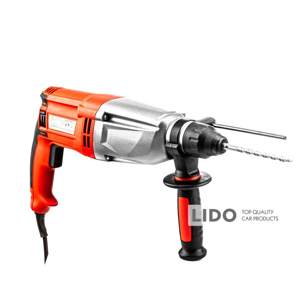 Перфоратор GTM RH28/850EV — полупрофессиональный инструмент для проведения сверлильных работ при ремонте и строительстве. Оснащен производительным коллекторным двигателем мощностью 850 Вт, питающимся от сети 220 В. Модель имеет 3 основных режима работы: простое сверление, сверление с ударом и долбление. Предусмотрен режим настройки угла зубила для более комфортной работы. Поставляется в крепком пластиковом кейсе вместе с набором пиков и буров.