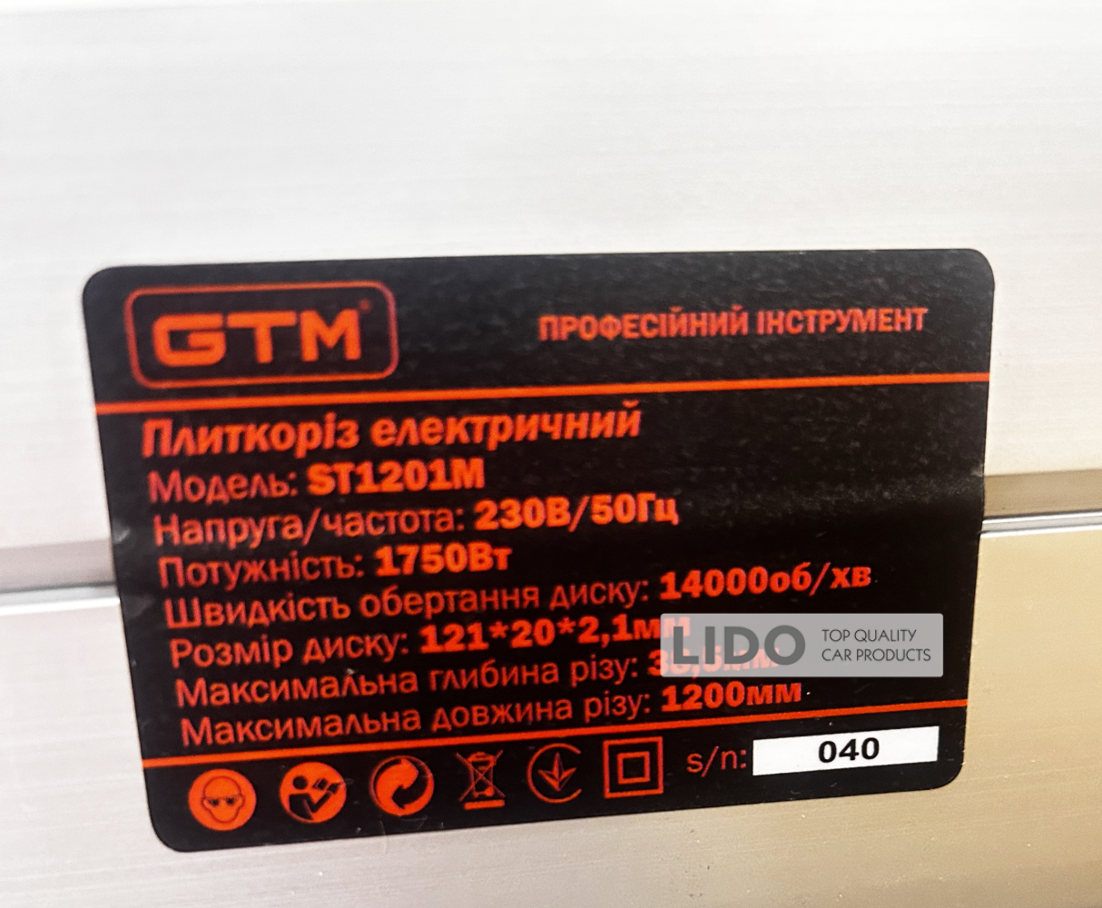 Характеристики Плиткорез GTM ST1201M электрический (1200 мм)