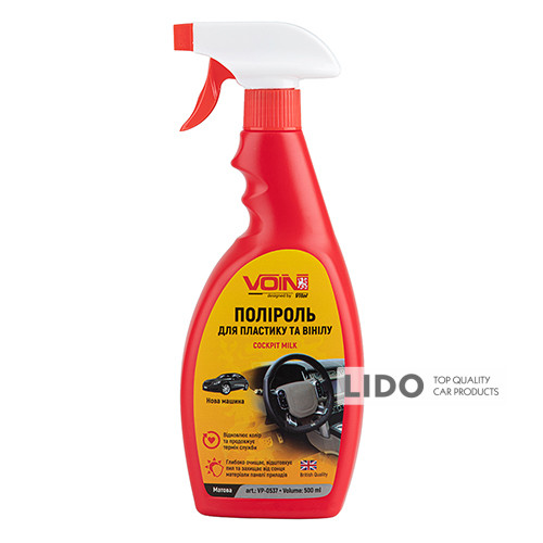 VOIN Новая машина – это универсальный полироль, эффективно очищающий, обновляющий и защищающий пластиковые, виниловые и резиновые поверхности салона автомобиля. Средство обеспечивает деликатный уход, поворачивая поверхностям первоначальный вид, создавая антистатический эффект и защиту от ультрафиолетового излучения.