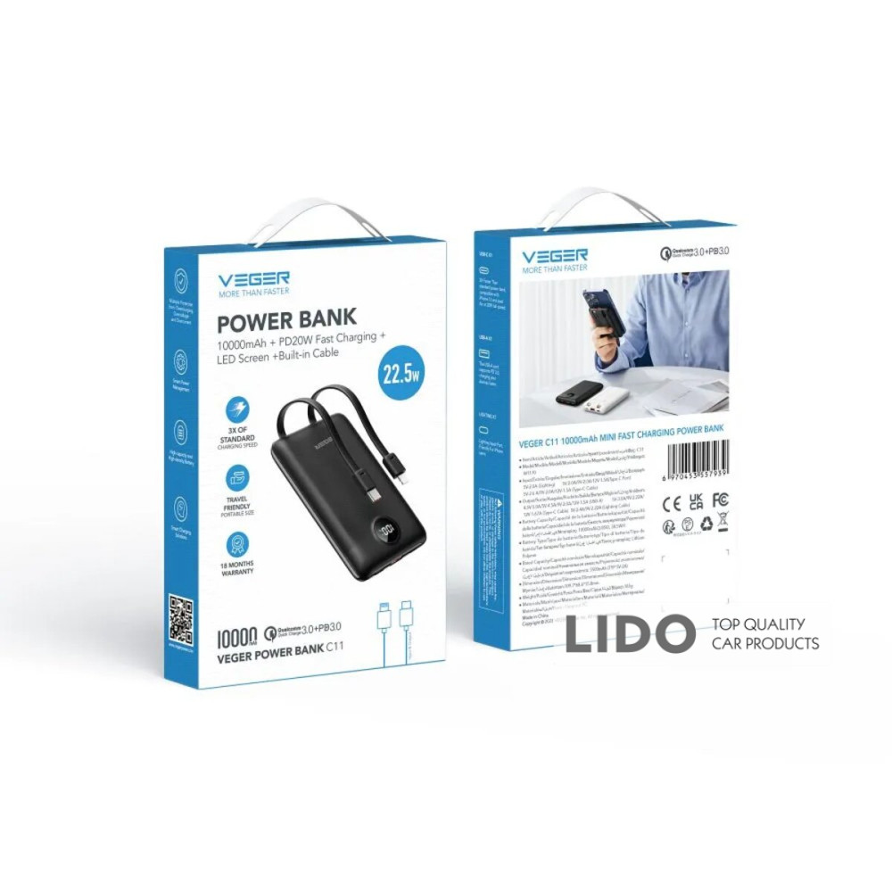 Повербанк (Power Bank) Veger C11 10000 mAh 22,5W PD QC3.0 2A черный