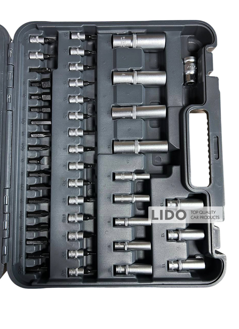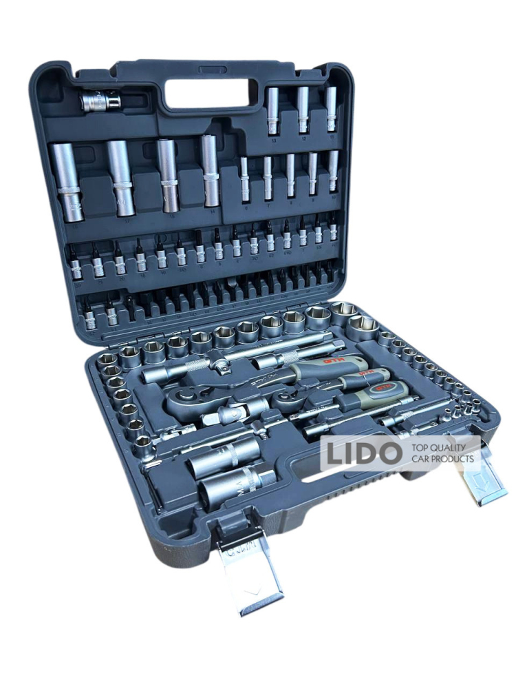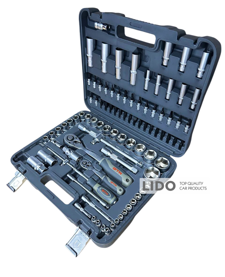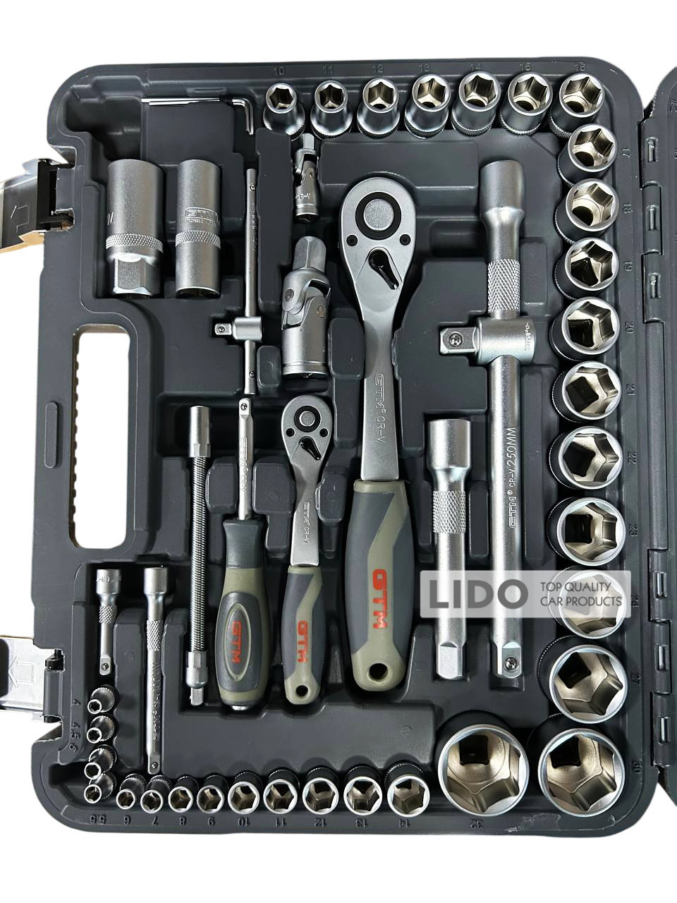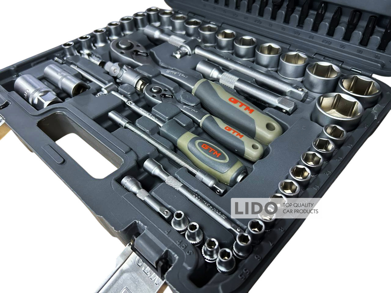 GTM GTS-094 – универсальный набор инструментов, предназначенный для использования дома, в мастерских и СТО. Все инструменты изготовлены из высококачественного сплава хромо-ванадиевой стали. Благодаря этому набор не опасается коррозии и воздействия воды. Включает в себя торцевые головки 1/4" и 1/2", трещотки, воротки и переходники. Поставляется в фирменном ударопрочном защитном кейсе GTM.