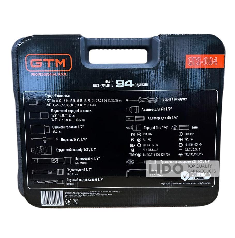 Характеристики Набор инструментов 94 ед. GTM GTS-094 1/4-1/2" (GTS-094):