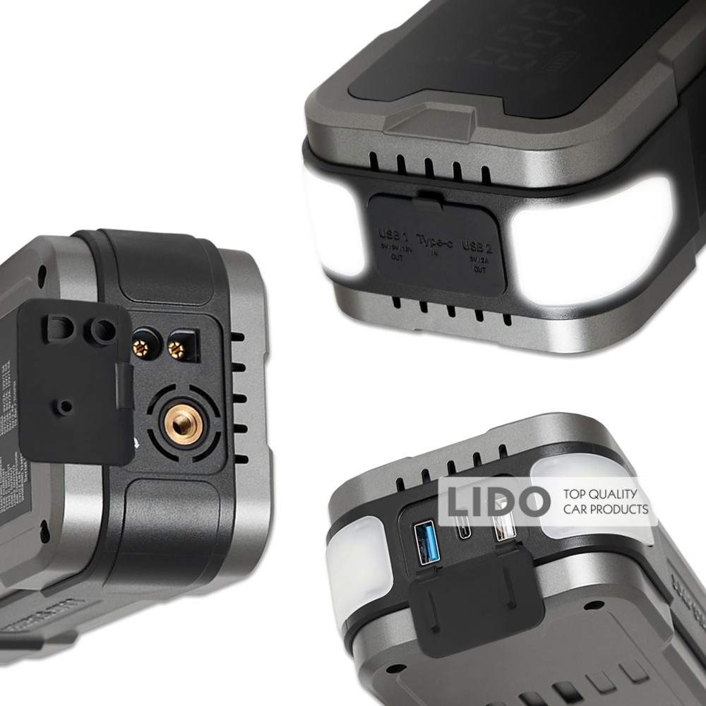 • Комплектация: пусковое устройство, футляр для хранения, пусковые SMART клеммы, кабель USB-type C, кабель 3 в 1, шланг и адаптеры для компрессора