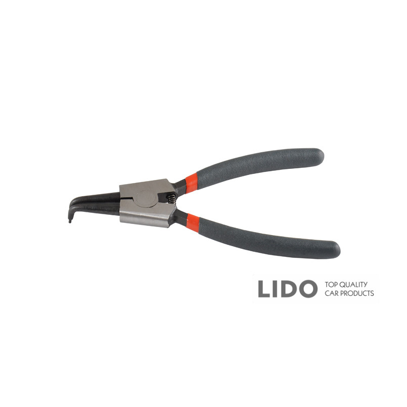 Щипцы изогнутые для монтажа и демонтажа наружных стопорных колец. Ручка покрыта пластиком для надежного, комфортного сцепления и работы. Закаленная сталь обеспечивает длительный срок эксплуатации и прочность изделия.