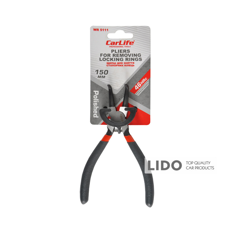Щипцы для снятия стопорных колец CarLife 150мм для сжатия, изогнутые WR5111